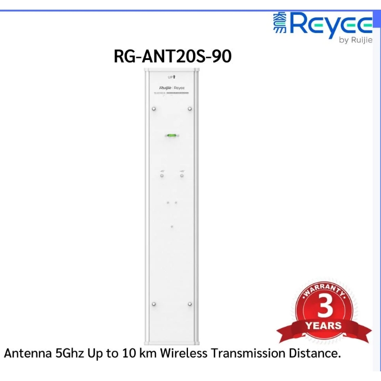 Reyee AirMetro RG-ANT20S-90, 5GHz Noktadan Çok Noktaya Bağlantıları dağıtmak için RG-AirMetro550G-B Baz İstasyonuyla eşleşecek şekilde özel olarak tasarlanmış bir sektör antenidir.